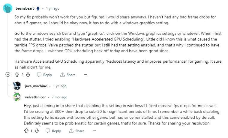 来源:多个用户通过禁用硬件加速 GPU 调度修复了 CSGO FPS 下降的问题