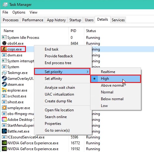 有时有许多程序/应用程序在后台运行。这些应用程序可能会消耗流畅游戏所需的重要资源。所以通过设置CSGO到高优先级,你本质上是在告诉你的电脑在分配资源时优先考虑CSGO。这样,如果后台运行大型应用程序,就不会影响游戏。