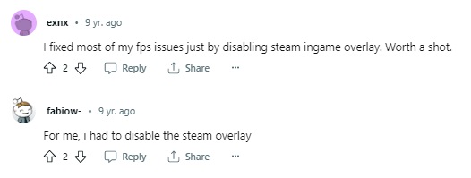 来源:Reddit 上的用户通过禁用 Steam 游戏内叠加解决了 FPS 问题