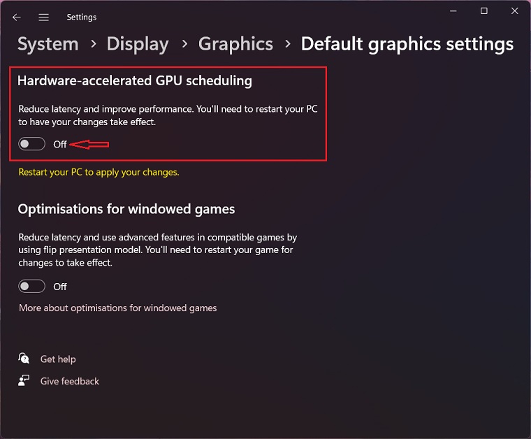 这是一项臭名昭著的功能,旨在帮助在游戏中实现稳定的 FPS 和性能,但最终导致的问题往往多于其解决的问题。许多用户报告说,通过禁用硬件加速GPU调度他们能够解决 CSGO FPS 下降的问题。