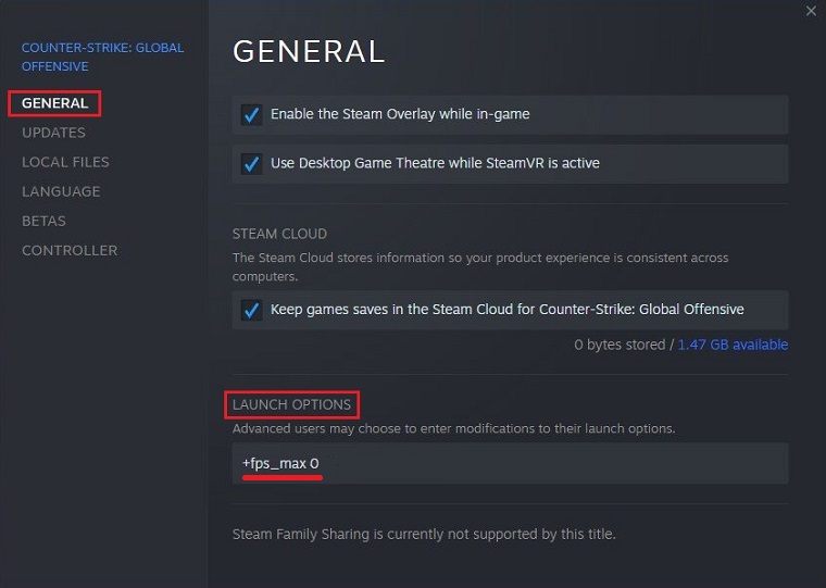 提高 CS: GO 中 FPS 的另一种方法是更改 Steam 启动器中的启动选项。