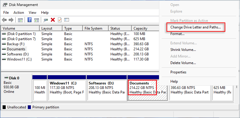 步骤2:右键单击 M.2 SSD > 单击“更改驱动器号和路径”。