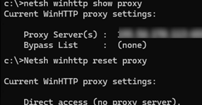 就我而言,我发现 WinHTTP 代理设置的地址设置不正确。检查当前的 WinHTTP 代理设置。