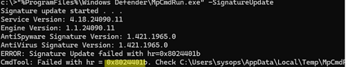 如果数据库更新过程中出现错误,您可以在以下位置找到更多相关信息:%userprofile%AppDataLocalTempMpCmdRun.log文件。