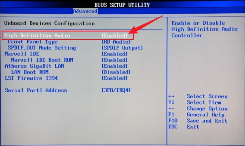 也许您的声卡设备已从 BIOS 中禁用。因此接下来您可能需要从 BIOS 启用它。