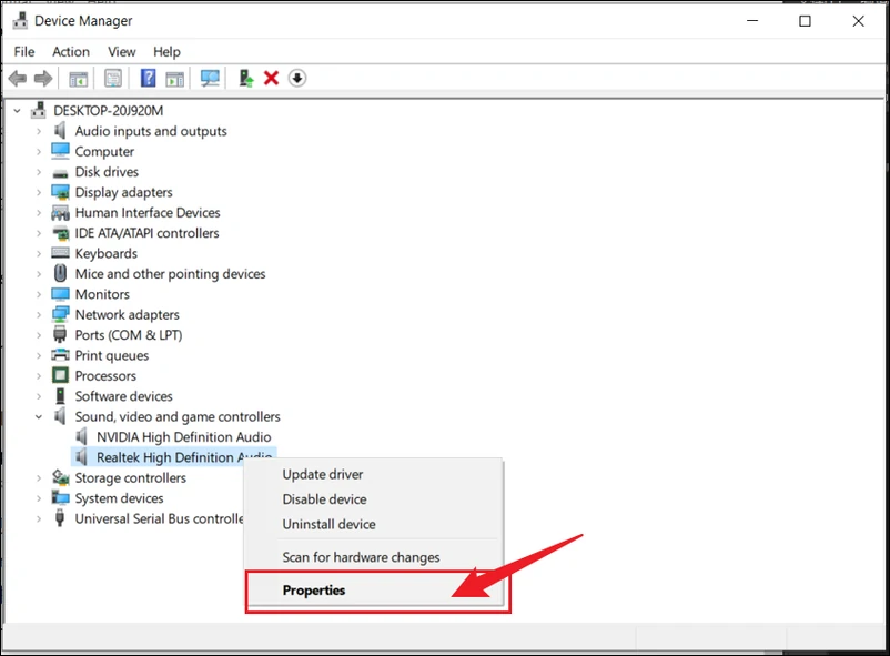 步骤1打开设备管理器并找到您的声卡设备然后将其卸载。