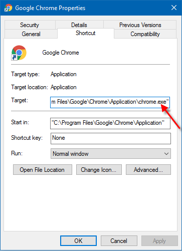 例如:“”C:Program Files (x86)GoogleChromeApplicationchrome.exe””