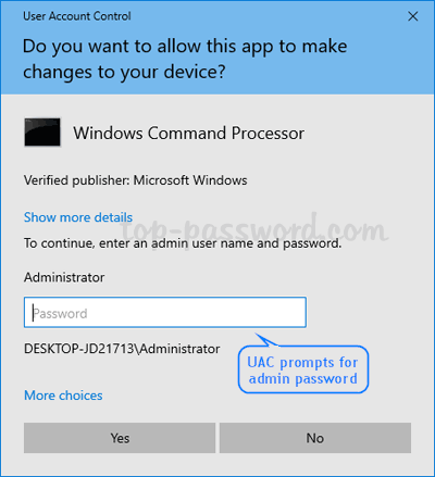 请注意,如果您使用标准帐户登录Windows,则不可能绕过UAC提示。当丢失UAC管理员密码时,您可以将标准帐户推广到管理员中,也可以使用Pcunlocker Live CD/USB重置您遗忘的密码。