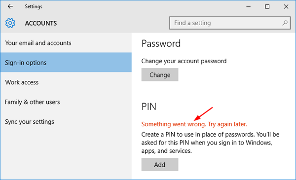 当您尝试在 Windows 10 中更改 PIN 或添加 PIN 登录时,您可能会收到错误消息“出现问题。请稍后再试。”