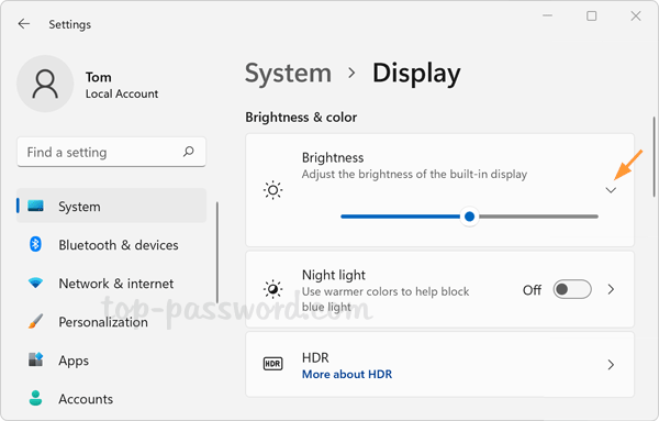 单击“旁边的小箭头”亮度”滑块将其展开。