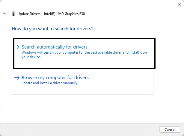 步骤4。单击自动搜索以获取更新的驱动程序软件。