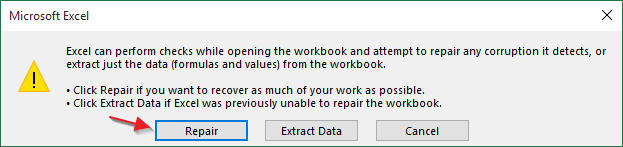 现在,再次打开工作簿检查错误消息是否已删除。