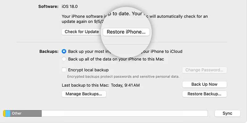 3. 在计算机上打开 itunes(如果您使用的是 Mac,则打开 Finder),然后单击“恢复 iPhone”按钮。