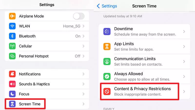 1. 打开“设置”应用程序,然后点击“屏幕时间”>“内容和隐私限制”。