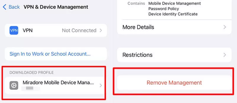 2. 移动设备管理 (MDM):如果您的 iPhone 由组织控制,MDM 配置文件可以阻止对此选项的访问。