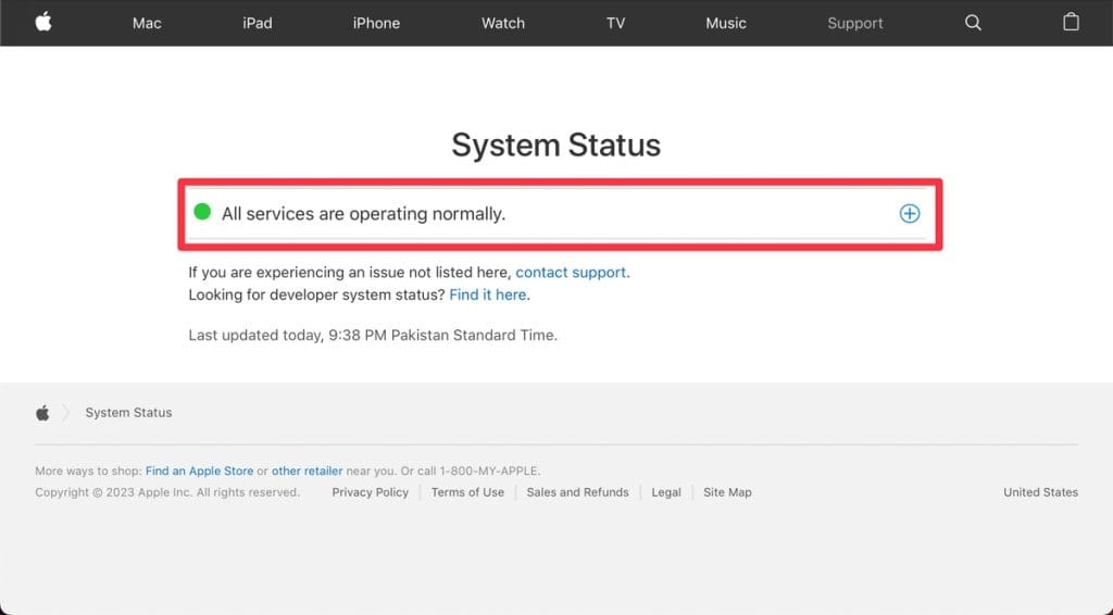 - 打开您的网络浏览器并转到Apple 系统状态页面。