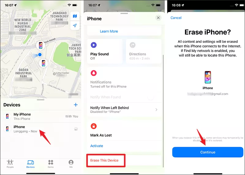 “查找我的 iPhone”是 Apple 设计的一款防盗应用程序,旨在帮助用户找到丢失或被盗的 iPhone,它还可以用于擦除您的 iPhone 以删除您忘记的密码。当您在 iPhone 上登录 Apple ID 后,此功能就会默认启用,让您有机会抹掉忘记的 iPhone 密码而无需恢复。你有两个选择。