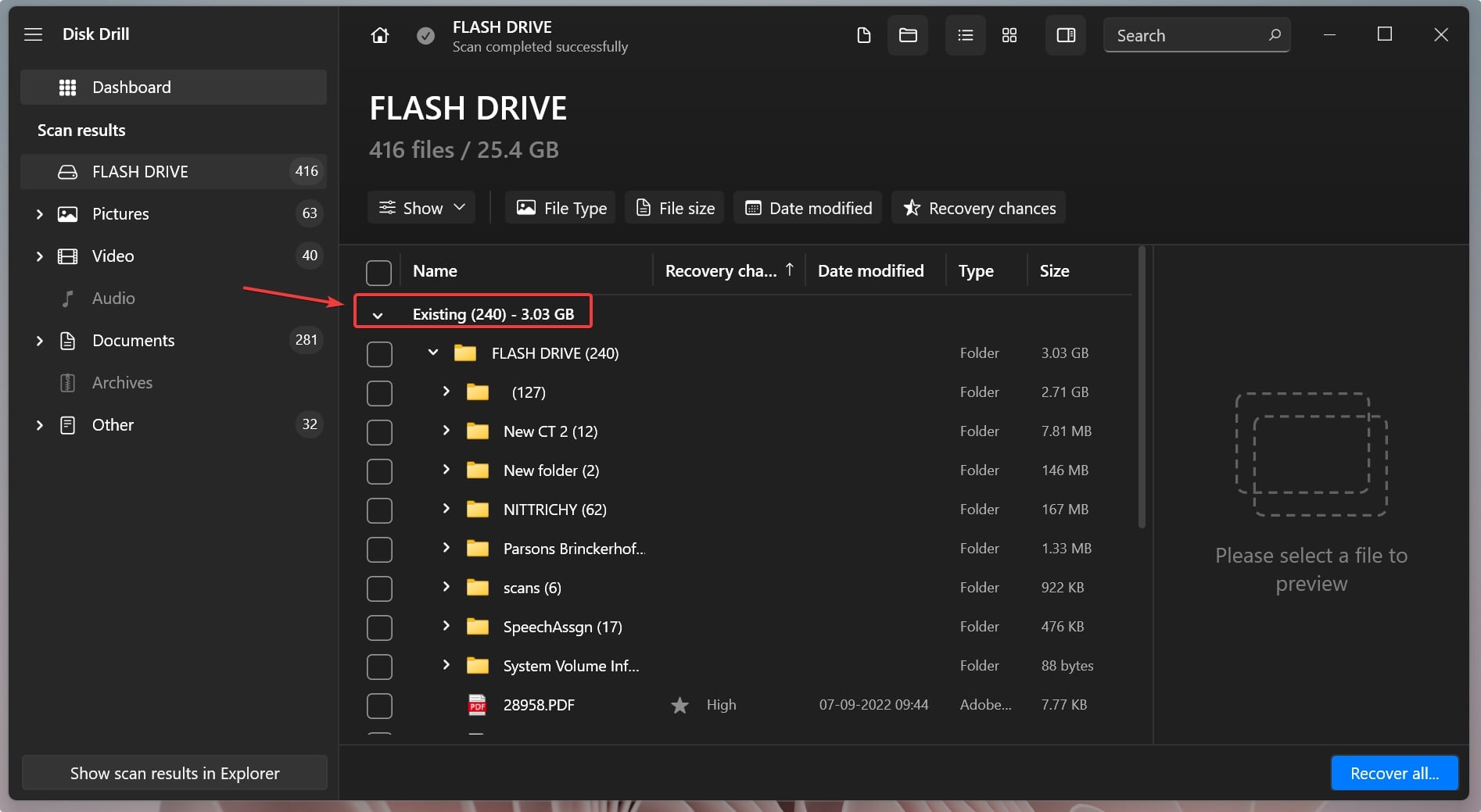 - 扫描结束后,单击查看找到的项目查看硬盘驱动器上有坏扇区的可恢复文件。