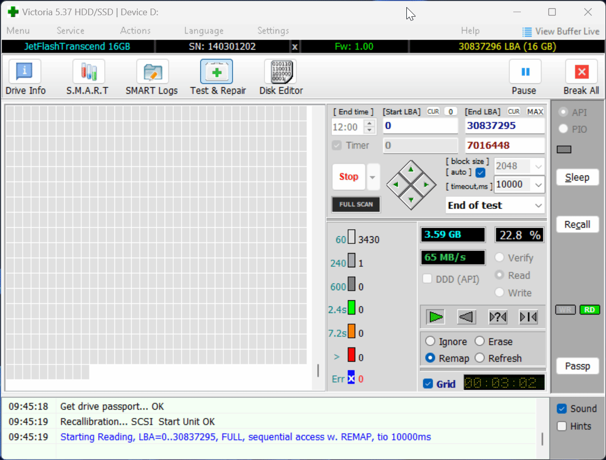 - 等待该过程完成。该工具可确保重新分配的扇区在硬盘驱动器上正确映射。
