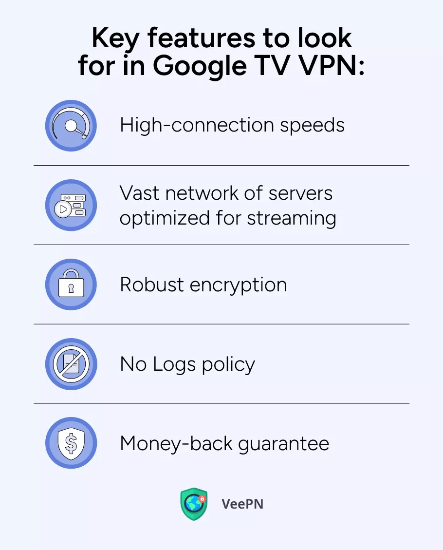 可靠的 Google TV VPN 应用必须提供以下功能: