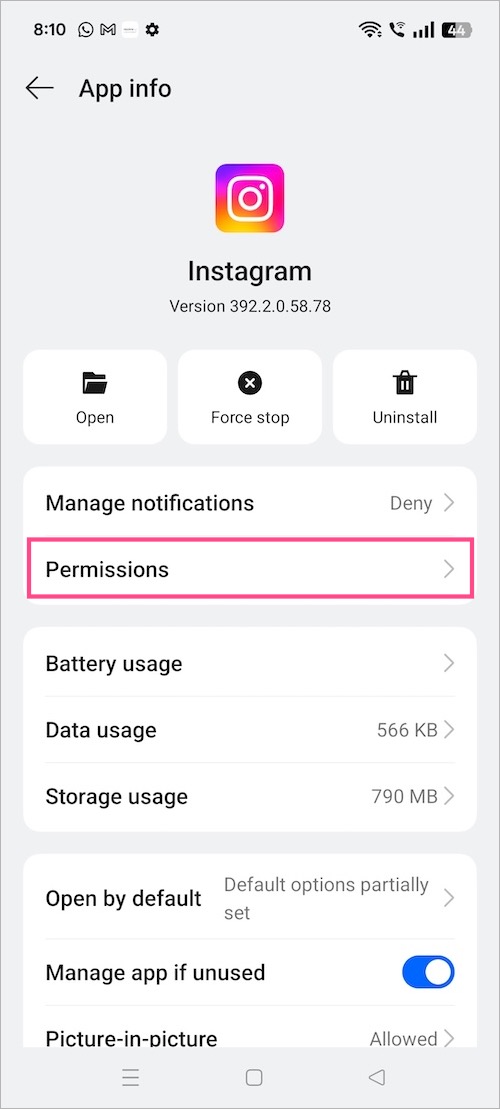 - 轻敲权限(或应用程序权限)。