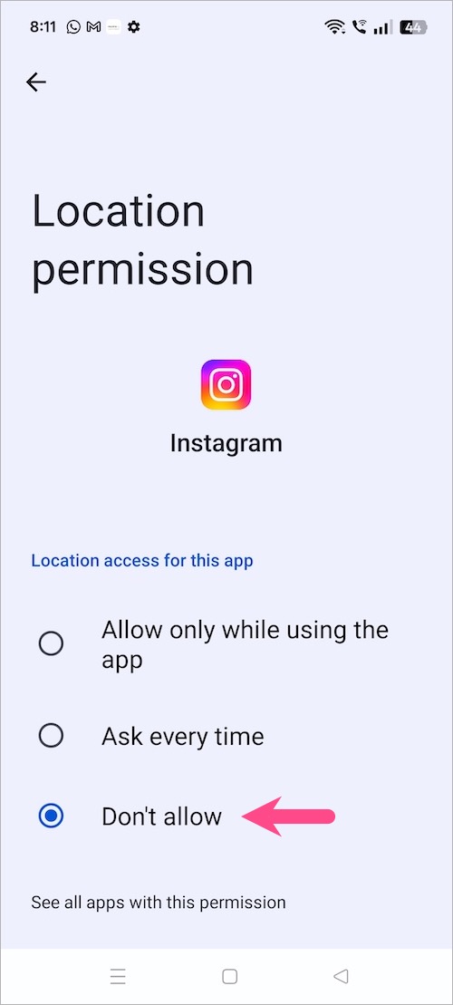 - 选择绝不完全阻止 Instagram 访问您的设备位置。