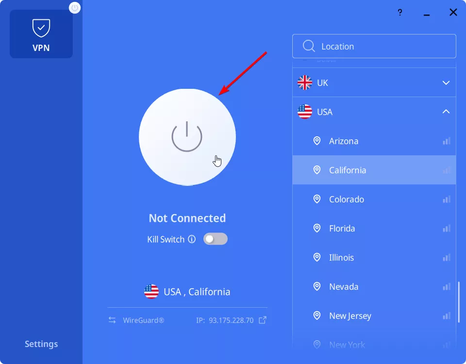 - 重新连接到 VPN。禁用 VPN 几秒钟,然后尝试重新连接到另一台服务器。