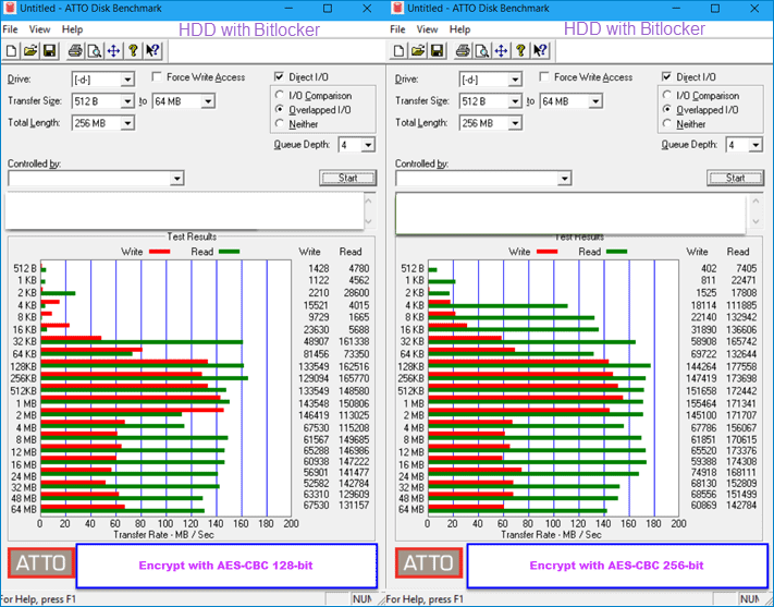 直观地加密。 (上表为写入速度,下表为读取速度)