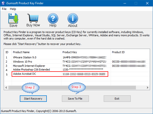 借助我们的产品密钥查找器,只要序列号信息仍保留在 Windows 注册表中,您就可以轻松找回 Acrobat 序列号。下面的这些步骤将向您展示如何恢复 Acrobat Pro 的序列号,供您参考。