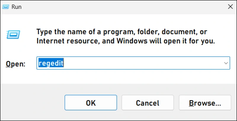 步骤1按 Win + R,输入regedit,然后按 Enter 打开注册表编辑器。