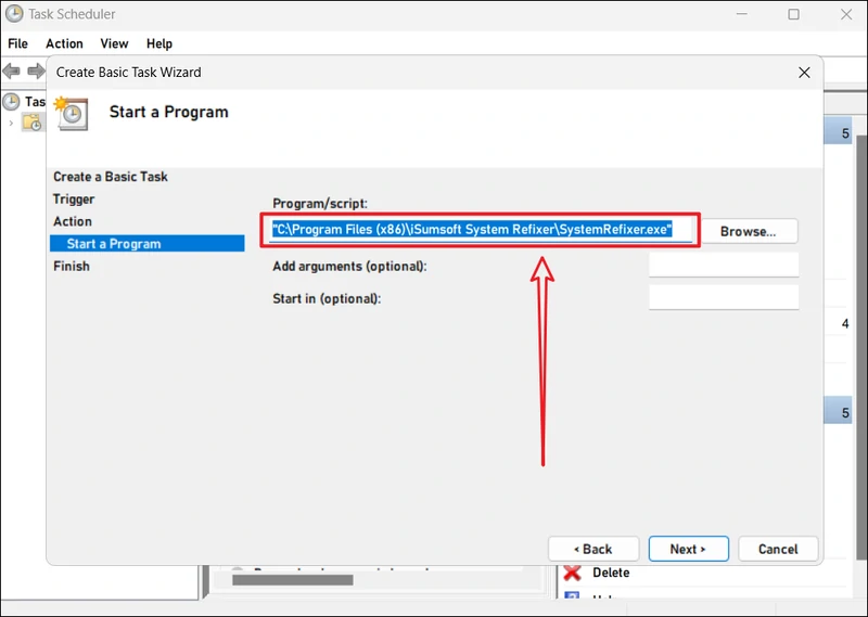 步骤5选择“启动程序”并浏览到该软件的.exe 文件。