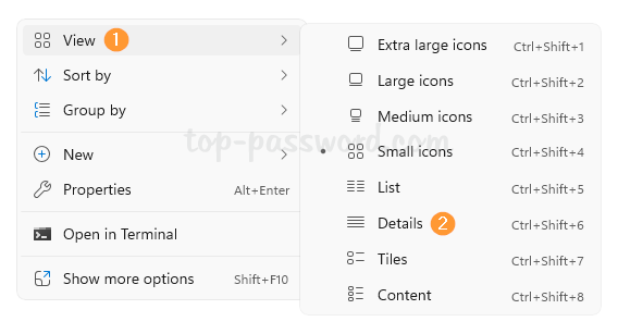 - 打开文件资源管理器并导航到标记文件的位置。右键单击空白空间,然后选择看法- >细节从弹出菜单中。