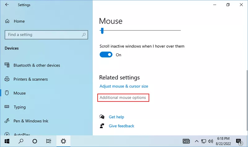 第 1 步:点击附加鼠标选项打开鼠标属性。