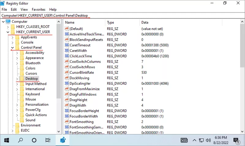 第 3 步:导航至计算机>HKEY_CURRENT_USER>控制面板>桌面。