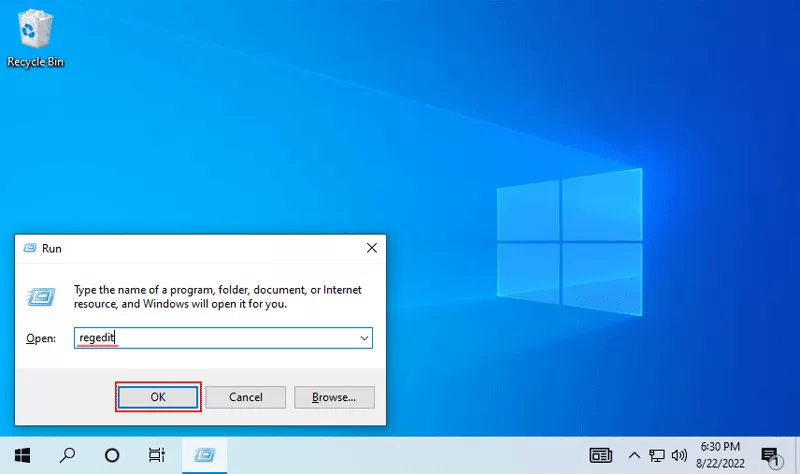第 1 步:按赢+右打开跑步框,输入注册表编辑器,然后单击好的或按进入钥匙。