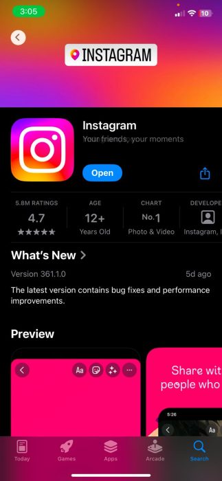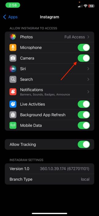 如果您的朋友和家人也看不到“允许相机访问”选项,则问题可能与 Instagram 应用程序有关。 Meta 通常会发布新的更新来解决此类问题。更新 Instagram: