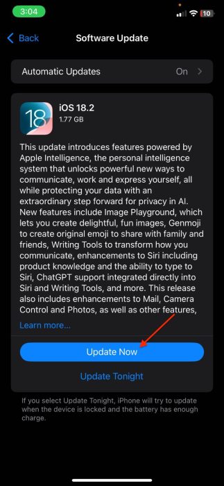 有时,新的 iOS 版本会引入一些错误,可能导致应用程序的相机权限系统崩溃。在这种情况下,Apple 会推送新的更新来解决该问题。以下是安装最新 iOS 版本的方法:
