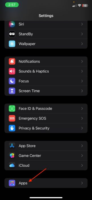 - 打开设置应用程序并向下滚动到应用程序。