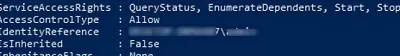 该方法的主要缺点是向服务授予权限的格式非常复杂。使用安全描述定义语言(SDDL)格式。