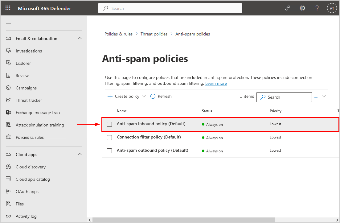 具有反垃圾邮件策略的 Microsoft 365 中的白名单域