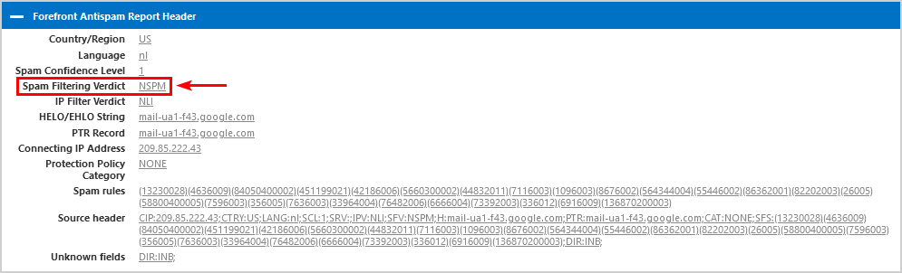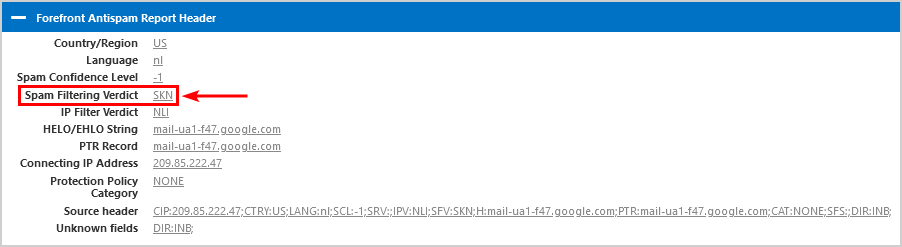 它将显示垃圾邮件过滤判决 (SFV):将要。