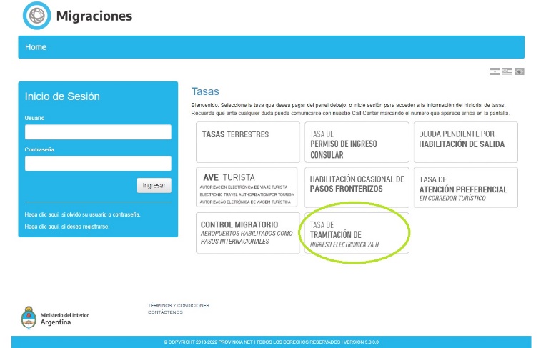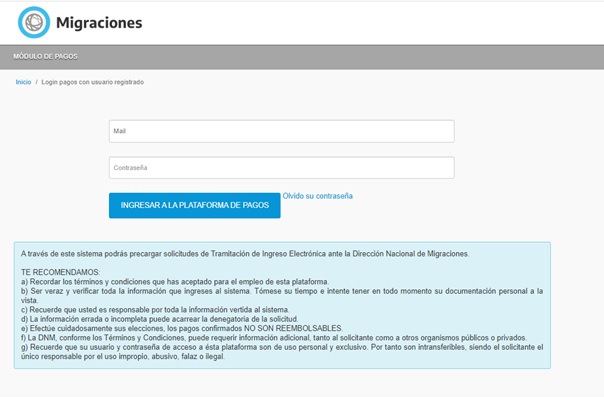 您需要通过 BAPRO (Provincia Net) 门户直接向国家移民局 (DNM) 支付所需费用。