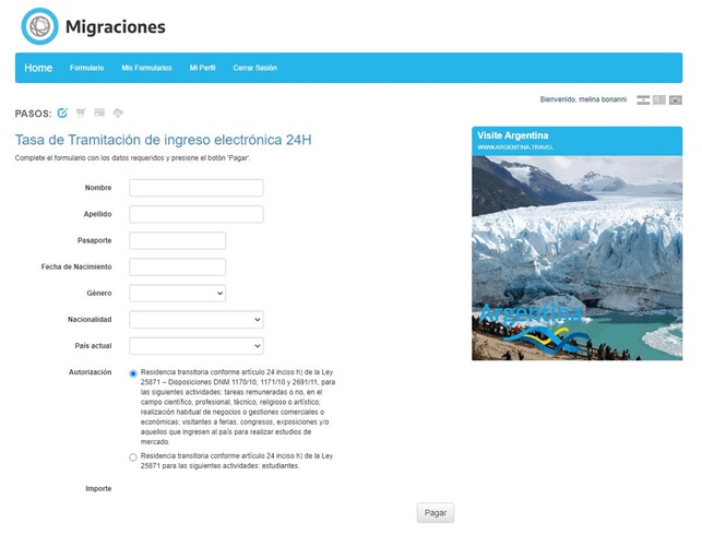 如果您在迁移系统中上传电子入境申请时没有付款pdf,您可以使用您的用户名和密码再次进入Bapro页面,然后进入“我的表格”。