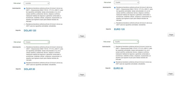 - Nacionalidad(国籍):仅显示不需要签证即可进入阿根廷共和国的国籍。