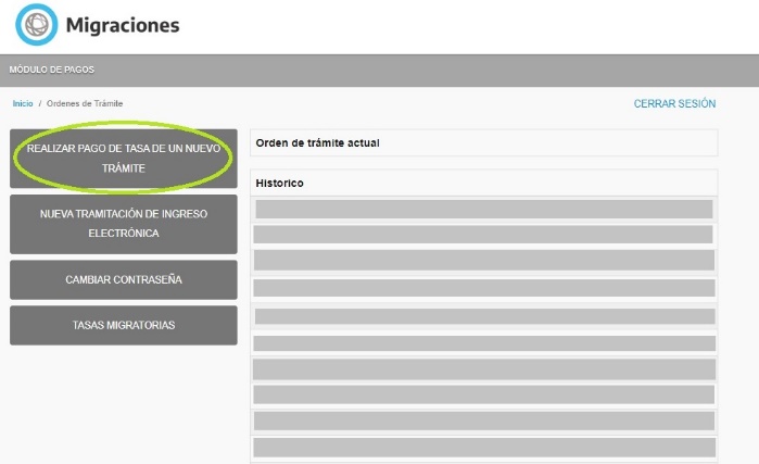 要开始该流程,请选择“1° PASO – Inicia el Tramite y valida el pago”(第一步 – 开始流程并验证付款)。