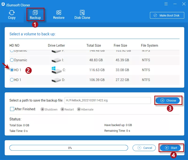 第 1 步:打开 iSoft Cloner 并选择备份备份 Windows 10 的选项。