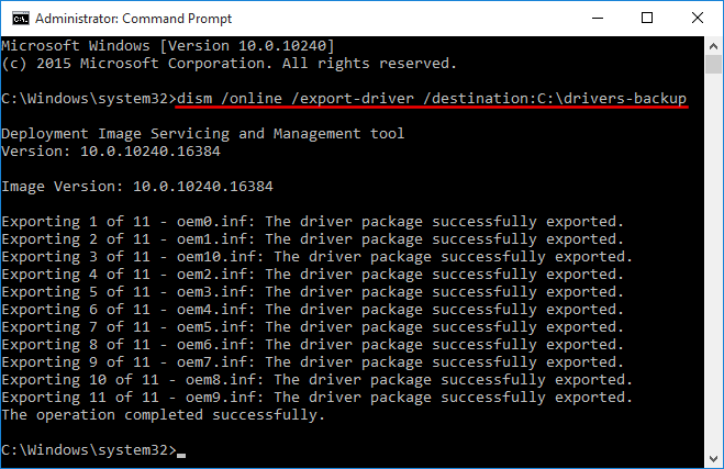 dism /online /export-driver /destination:C:\drivers-backup