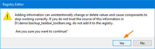 只需双击您之前保存的 .reg 文件即可。点击是的当UAC要求确认时。