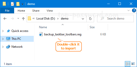 您的任务栏工具栏设置将以 .reg 格式保存。选择所需位置并输入文件名,然后单击节省。
