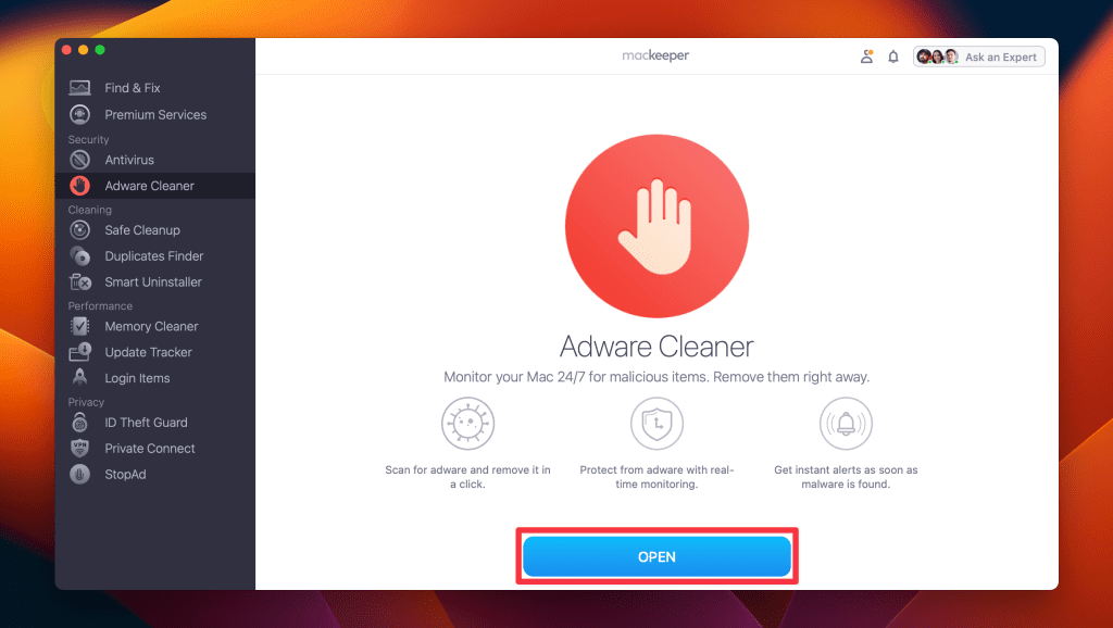 - 下载 并在您的 Mac 上安装 MacKeeper。